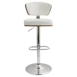 The Ravinia Barstool is the embodiment of upscale comfort. Its wide cushioned seat, backrest and adjustable base allow anyone to sit with ease, while its polished chrome base and faux leather cushions elevate the barstool to a sleek and sophisticated look. The comfy padded seat if perfect for long conversations, or a quick morning breakfast.