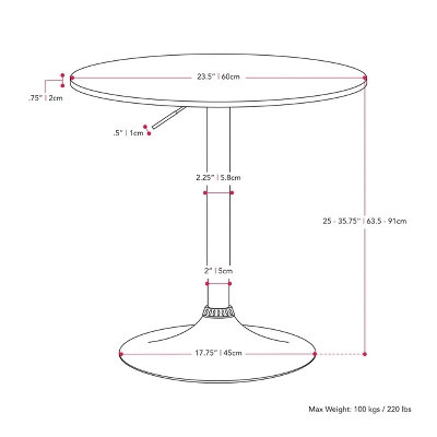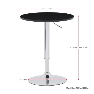 The options are endless with this modern table. Extend the height to bar level and share a drink with friends or, lower the height to enjoy a meal with family. The round top allows for a smaller footprint to fit in any space. Add some CorLiving bar stools and your all set.