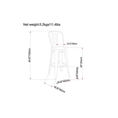 Yaheetech Set Of 4 Metal Backless Counter Height Bar Stools Stackable Chairs