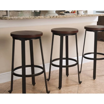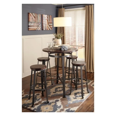 Rustic in feel with modern appeal, the tall Challiman pub height bar stool is styled with fascinating flair. Veneered plank table surface serves up cool distressed character. Sculptural legs punctuated by L-shape feet form the industrial-inspired base. Signature Design by Ashley is a registered trademark of Ashley Furniture Industries, Inc.