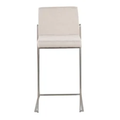 Set Of 2 FujiHB Polyester/Steel Counter Height Barstools Beige – LumiSource