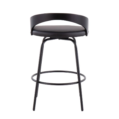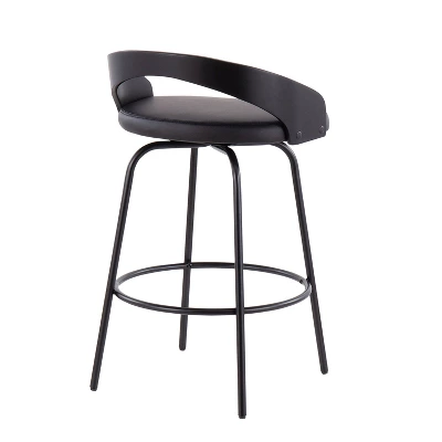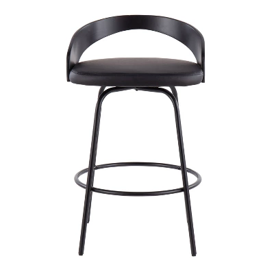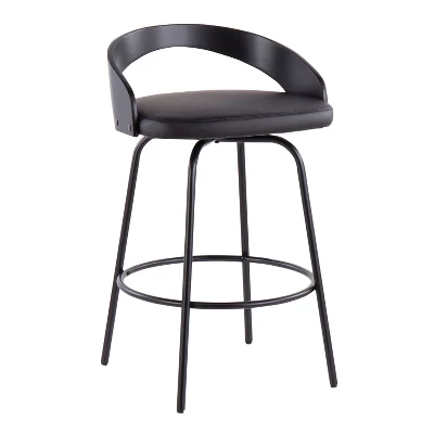 Introducing the Grotto Claire Swivel Counter Height Barstool by LumiSource. With a low curved back and metal rounded legs radiate sophistication while modern features like a faux leather upholstered cushioned seat that swivels and a footrest bring this piece into a contemporary class all of its own. The comfy padded seat this stool is perfect for a quick breakfast or long conversations.