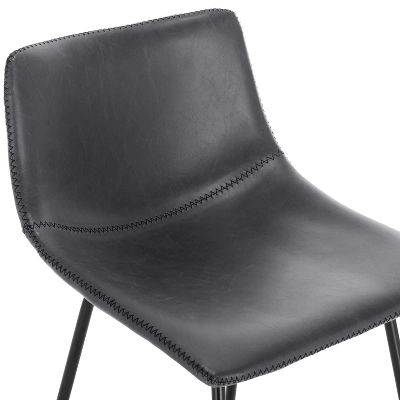 Pull this handsome counter stool up to the bar or kitchen island for a signature urban look. Designed with a gently scooped seat and low-profile back upholstered in beautiful, yet durable textured leatherette, its subtly exposed saddle stitching will leave your guests impressed. A welded steel base ensures this robust counter stool is a great choice for everything from kitchen countertops to modern restaurants.