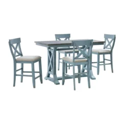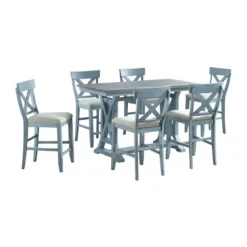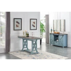 Finished in our Bar Harbor Blue and with a trestle style base and a natural wood grain plank top to keep the look fresh and light, this counter height Dining Table is ideal for eating nooks anywhere! From your country farmhouse, to your seaside villa, to your mountainside retreat, this table is the perfect choice for you and your family.