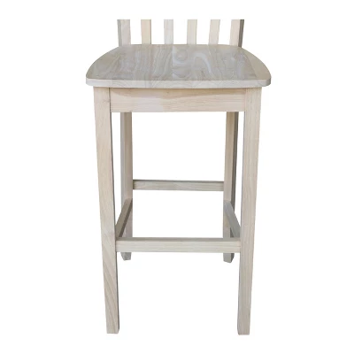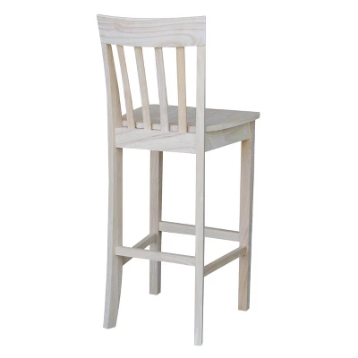 Offer a warm, inviting look to your kitchen, dining room, bar, or lounge with this solid wood barstool from International Concepts. This beautifully crafted stool is part of a high-quality collection of wood furniture that boosts a traditional and elegant look that will easily complement any décor. Parawood – a hardwood known for its durable, strong, and environmentally friendly nature – is used to craft this attractive and durable stool. Pair with one of the wide variety of solid wood tables from International Concepts and create the perfect gathering place in your home! These unfinished pieces are ready to be stained or painted in your choice of color.