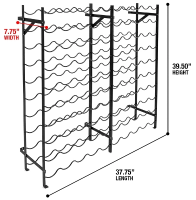 - STURDY DESIGN — Made of sturdy metal construction with smooth black finish — Features rows of scallop/wave shaped shelves — Solid structure prevents wobbling, tilting, or falling — Holds most standard wine bottles — Wine Bottles NOT INCLUDED