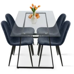 - • SEATS 4 PEOPLE: This dining table and chairs set comfortably seats 4 people. The table measures 59″ W x 35.5″ D x 30.5″ H, weighs 83.8 lbs, and can hold up to 100 lbs. Each chair measures 17″ W x 20″ D x 35.5″ H overall and weighs 12.6 lbs. The seat measures 17″ W (front) x 14.25″ W (back) x 15.75″ D x 19″ H off the ground. The seat back is 16″ W x 1″ D x 17″ H. Each chair supports up to 275 lbs.