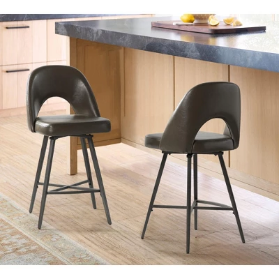 This stylish and contemporary bar stool seamlessly blends modern and mid-century modern design elements. This bar stool set with cutout design is the perfect addition to any space, whether it’s your kitchen, living room, bar, restaurant, club, cafe, or office. This bar stool set is upholstered with high-quality vegan leather, which is both durable and easy to clean. Both the backrest and seat cushion are filled with soft and supportive foam providing a comfortable seating experience that’s perfect for extended periods of sitting. The legs are made of sturdy metal, which ensures maximum stability and durability. Its durability and comfort make it a practical and long-lasting seating option for any space. Item Size:18.1″W*20.25″D*38.5″H, Seat Size:17.25″W*18.5″D*26″H.