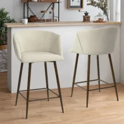 26″ Chole Armrest Upholstered Counter Height Stool With Walnut Legs (Set Of 2)-Maison Boucle